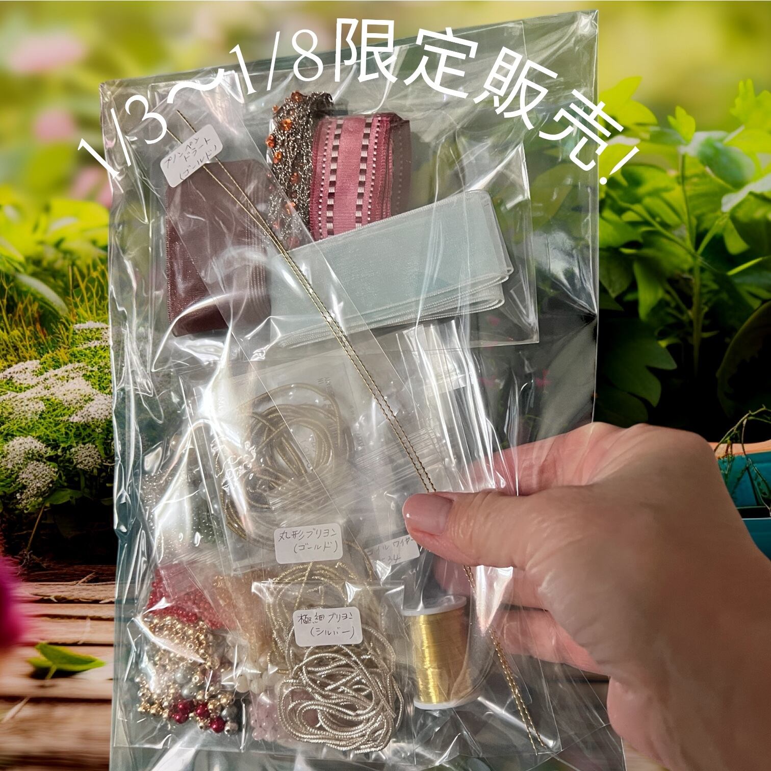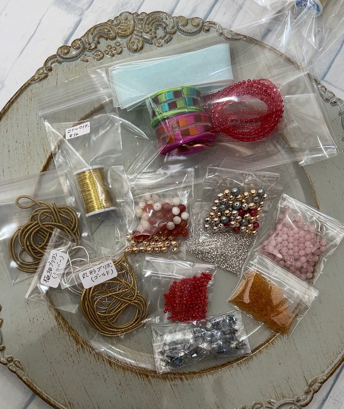 小さなものづくりを楽しんでいただけるよう、 ドイツワイヤーやブリヨン、ビーズなどを 少しずつ詰め合わせたパーツセットです。 何か作りたいな、と思ったときに すぐ手に取れるような内容にしました。 数量限定でのご用意となります。 気になる方は、ぜひこの機会にご覧ください。